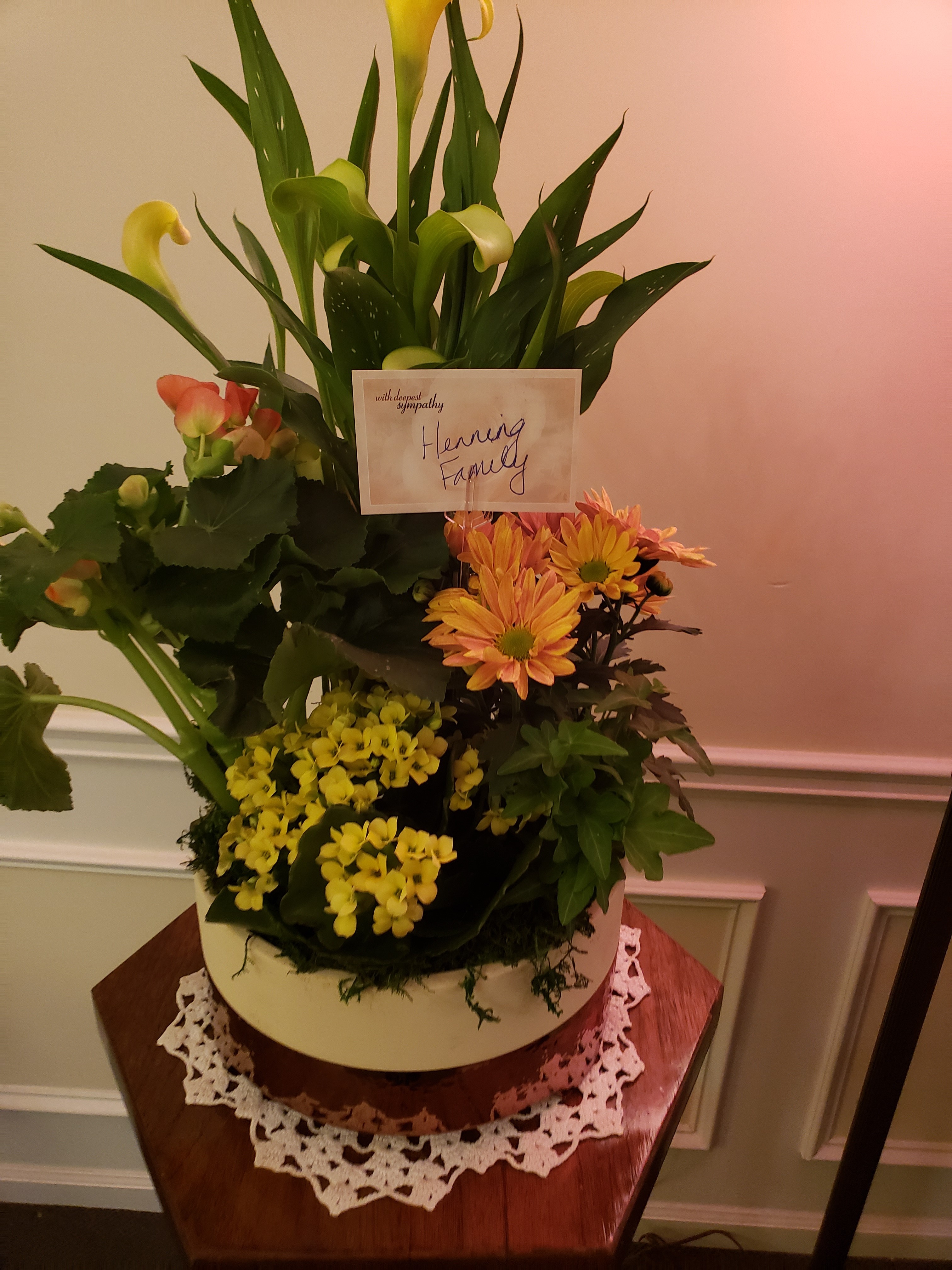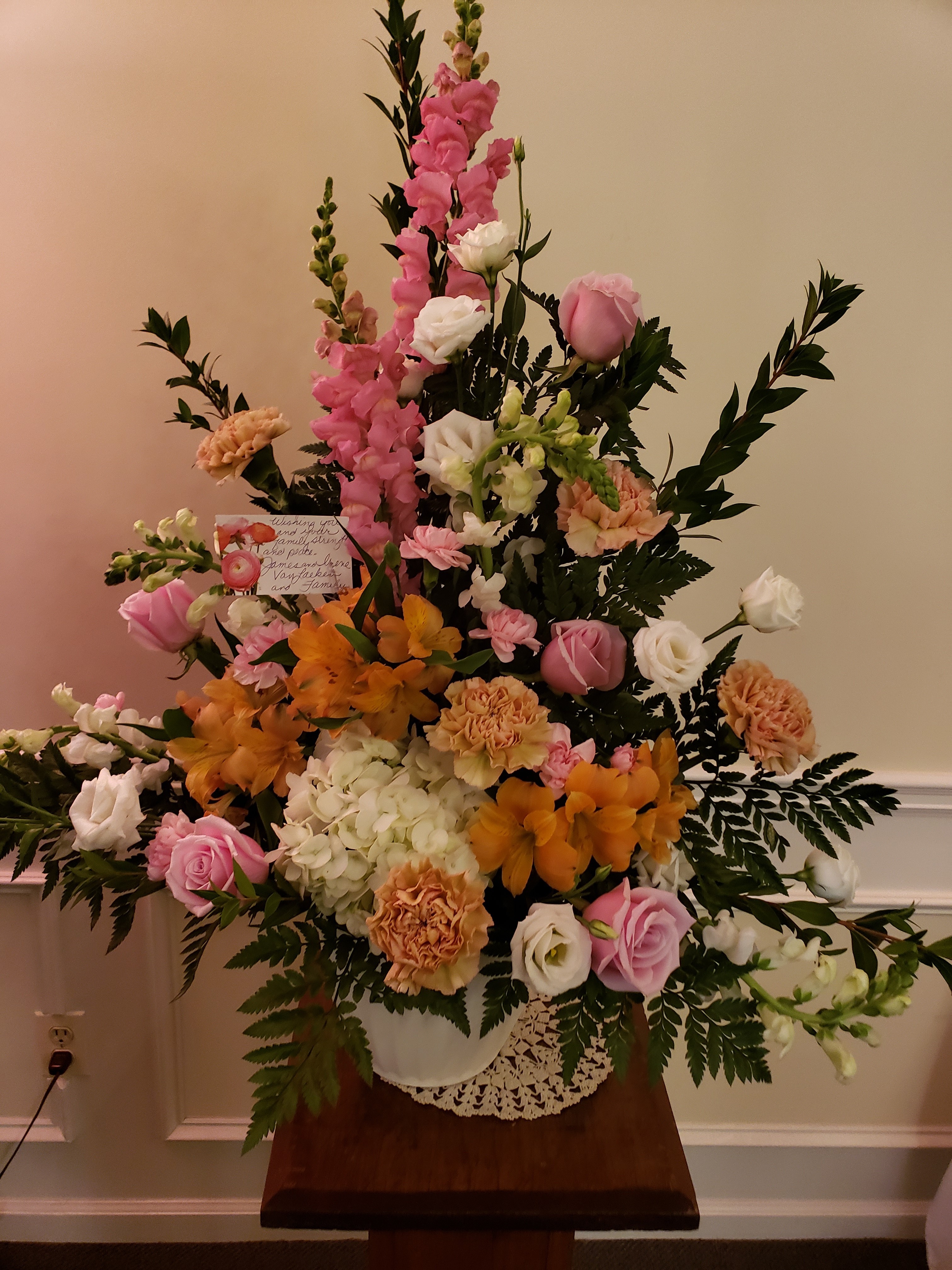 SWEET AND WARM REMEMBRANCE PEDESTAL ARRANGEMENT was purchased for the family of Martha Jane Hegeman by James ,and Irene Van Laeken and family. Send Flowers